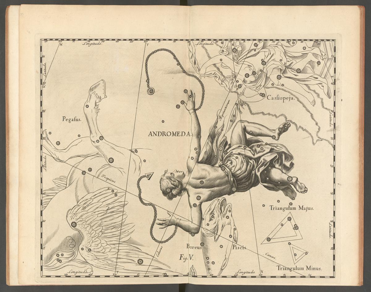 O céu nocturno está repleto de personagens, criaturas e máquinas. As diferentes culturas que olharam para o firmamento transpuseram para ele alguns dos seus mitos mais importantes. A mitologia dos povos mediterrânicos está especialmente bem representada, em particular a de origem helénica. Um dos episódios mais celebrados desta mitologia, na arte e na escrita da civilização ocidental, é o salvamento de Andrómeda pelo herói, semi-deus, Perseu.