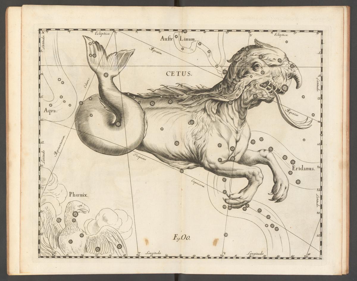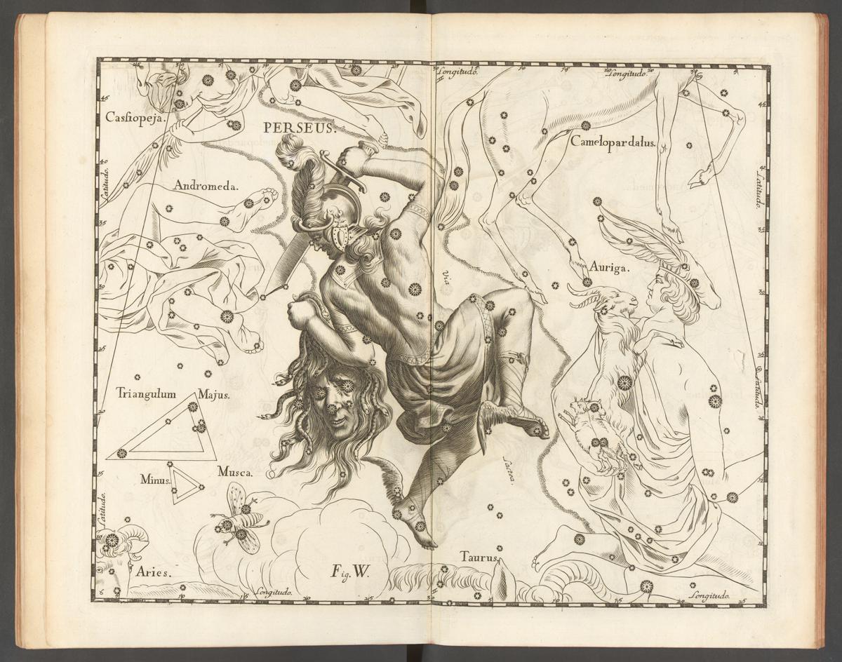 As imagens que se seguem das constelações individuais fazem parte do atlas celeste Uranographia, do astrónomo polaco Johannes Hevelius, publicado em 1687. O atlas era uma publicação científica, com o objectivo de fornecer aos astrónomos uma cartografia precisa do céu nocturno. No entanto, como se pode observar, os mitos associados a estas constelações, com uma tradição de mais de 2 mil anos, continuavam a ser desenhados nos mapas, apesar de não terem relevância científica. Esta prática é visível em atlas publicados até ao final do século XIX.